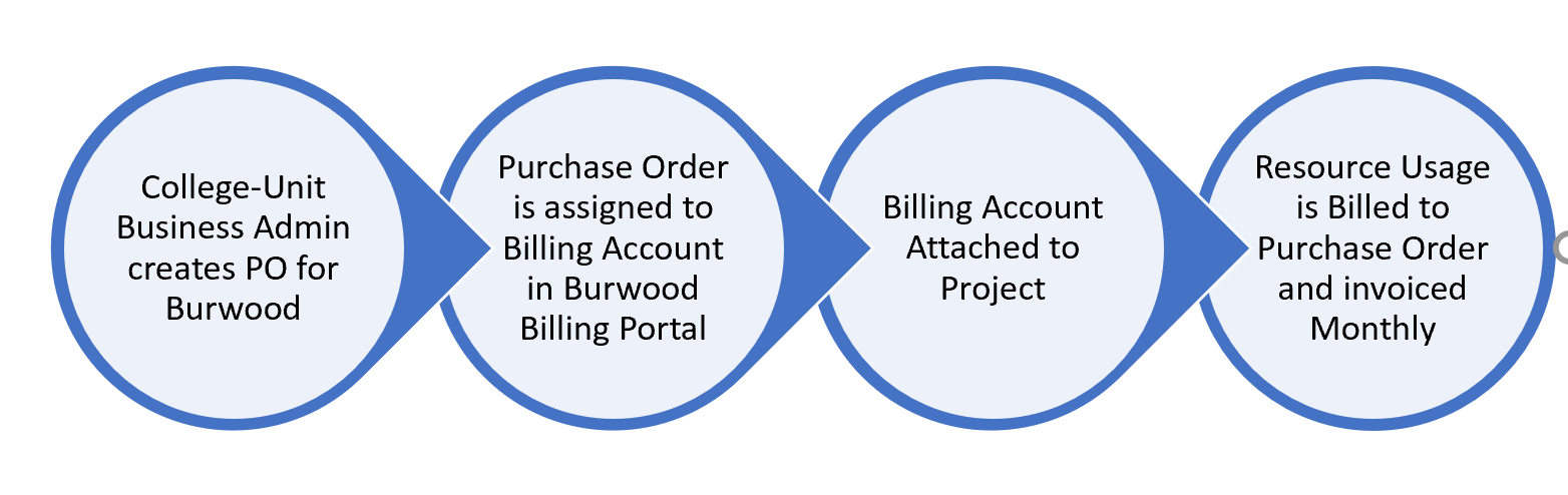 - Each College (or smaller unit) can manage their own Billing and interface with Burwood Group (our reseller) through their billing portal. Research Computing will assist in setting your project(s) up in the billing portal and providing access if requested.